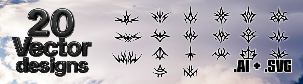 This is a sample pack—20 original NeoTribal sigils hand-picked from the full archive to give your designs sharper teeth and stranger roots.